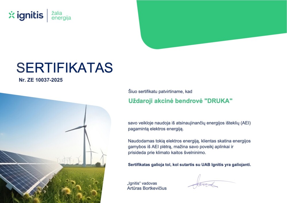 Pradinis Apie DRUKA Sertifikatai Sertifikatai Sertifikatai Apie DRUKA Istorija Technologinės galimybės Komanda Socialinė atsakomybė Sertifikatai